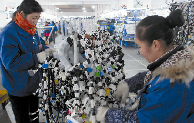 上圖是我公司工人正在生產(chǎn)汽車電線束。2009年,“正奧牌”電線束被評(píng)為湖北省名牌產(chǎn)品。目前,我公司生產(chǎn)的電線束市場(chǎng)占有率位居國(guó)內(nèi)同行前列,自主品牌銷量位居省內(nèi)同行第一。