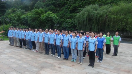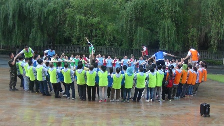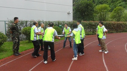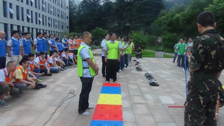 在拓展項(xiàng)目訓(xùn)練中,大家聽從指揮、服從安排,整個(gè)活動(dòng)在緊張、激烈、歡聲中度過。活動(dòng)開始,教練把參訓(xùn)人員分成“天藍(lán)色、深藍(lán)色、橙色、紅色、淺綠色、深綠色6支隊(duì)伍。在統(tǒng)一著裝及熱身后,大家便以小隊(duì)為單位投入到緊張的訓(xùn)練課程中?;顒?dòng)包括指壓板、撕名牌、真人CS、呼吸的力量、同心鼓、動(dòng)力圈等項(xiàng)目,每一項(xiàng)訓(xùn)練,都是一次感動(dòng),每一次感動(dòng),都帶來一次心靈的震撼。每個(gè)游戲結(jié)束后,大家都對失敗的原因進(jìn)行深刻總結(jié),通過總結(jié)去領(lǐng)悟活動(dòng)中所蘊(yùn)含的理念和精神。讓大家深刻感受到了溝通、合作、相互激勵(lì)、融洽人際關(guān)系以及尊從團(tuán)隊(duì)規(guī)范的重要性。如:“呼吸的力量”項(xiàng)目需要把各自隊(duì)伍分成 “領(lǐng)導(dǎo)組”“指揮組”和“執(zhí)行組”3個(gè)組。各小組成員各負(fù)其責(zé),由“領(lǐng)導(dǎo)組”成員向“指揮組”成員描述“呼吸機(jī)”的構(gòu)造及制作方法,再由“指揮組”傳達(dá)并指導(dǎo)“執(zhí)行組”動(dòng)手制作。如何向其他成員描述機(jī)器的構(gòu)造和制作方法,以便耗時(shí)最短最高效的完成“呼吸機(jī)”的制作,考驗(yàn)著大家上傳下達(dá)的語言技巧、溝通的能力和協(xié)作能力。還有在最后進(jìn)行的“動(dòng)力圈”項(xiàng)目,更是將團(tuán)結(jié)協(xié)作作用發(fā)揮到了極致,所有人圍成圓形,用力將柔軟的繩索向后拉扯,讓繩索變成一條鋼鐵般堅(jiān)硬的繩圈,各自的隊(duì)長在繩子上抱圓走完全程!成功與否,在于對團(tuán)隊(duì)成員信任,這種信任感來源于100%的執(zhí)行力和團(tuán)隊(duì)協(xié)作能力!最終每個(gè)隊(duì)的隊(duì)長安全的走完了全程,活動(dòng)在“眾人劃槳開大船”的激昂音樂中完滿結(jié)束。 一天的活動(dòng),每個(gè)人都有一份收獲、一份感悟。大家高效執(zhí)行、自我挑戰(zhàn)、互助協(xié)作、克難攻堅(jiān),增加了大家對團(tuán)隊(duì)的理解和對自我價(jià)值的衡量。激發(fā)了大家克服了困難、克服了人性的弱點(diǎn),真正的領(lǐng)悟到了團(tuán)隊(duì)力量的強(qiáng)大,只要大家心往一起想、勁往一處使,任何困難和挫折都會(huì)被我們踩在腳下、拋在腦后,團(tuán)隊(duì)目標(biāo)也一定會(huì)實(shí)現(xiàn)!